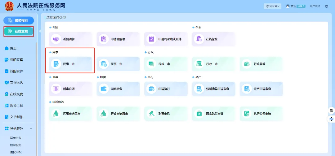 注意:如需要在河南法院立案,请搜索小程序“人民法院在线服务(全国版)”进行立案