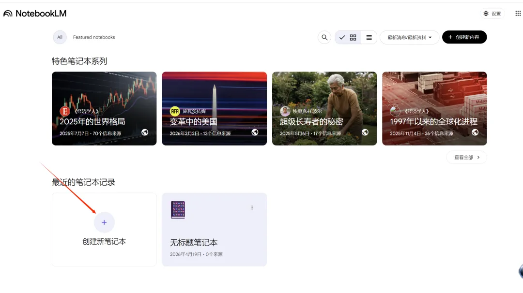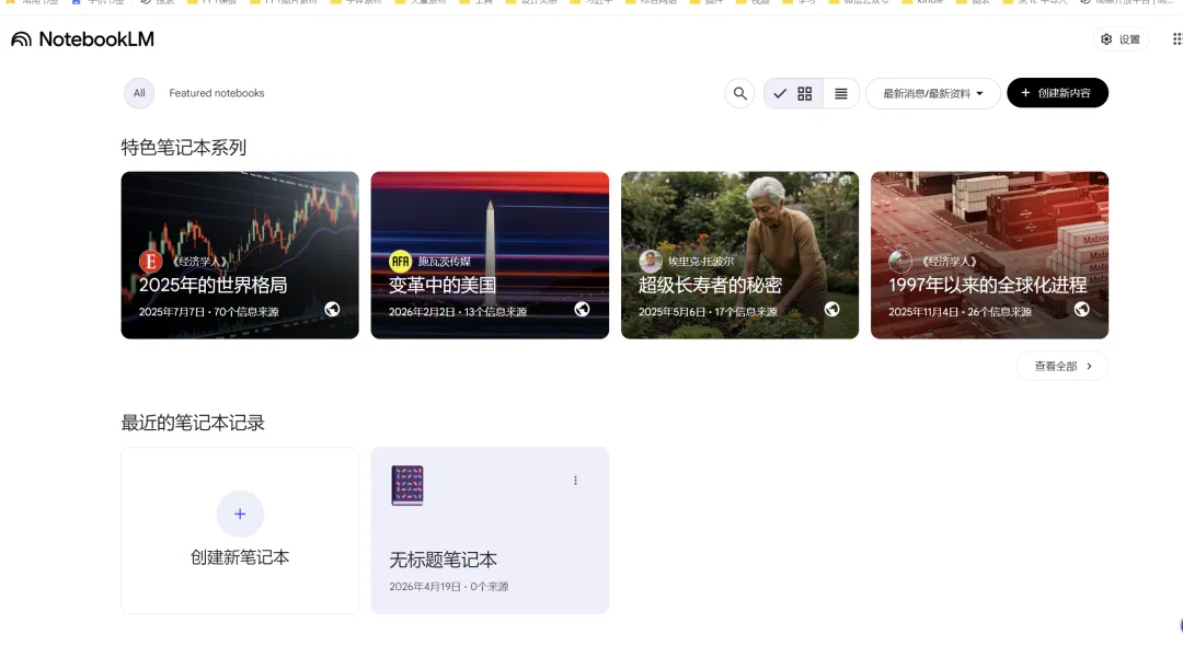 访问地址:notebooklm.google.com。免费版有次数限制且较慢,建议某鱼花几十块买个Gemini PRO账号(和NotebookLM打通)。浏览器可以点击网页翻译,直接就是中文版本了。