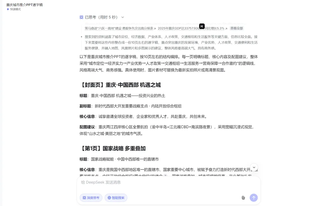⚠️ 一个很多人不知道的技巧:直接上传素材生成效果往往不理想。更好的做法是先让AI(比如用deepseek)生成逐字稿,再用逐字稿生成PPT。