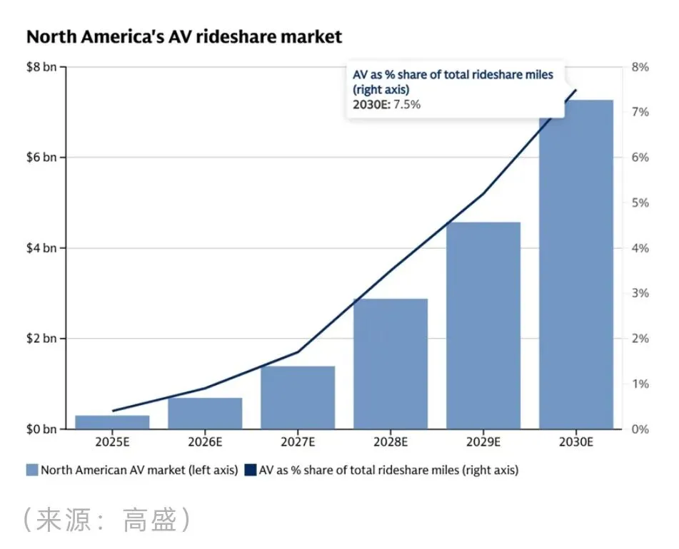 高盛预测,美国Class 8自动驾驶卡车市场2030年达160亿美元,2035年1050亿美元;全球市场2035年约5600亿美元,全球毛利润超过1350亿美元,未来十年累计约3000亿美元。