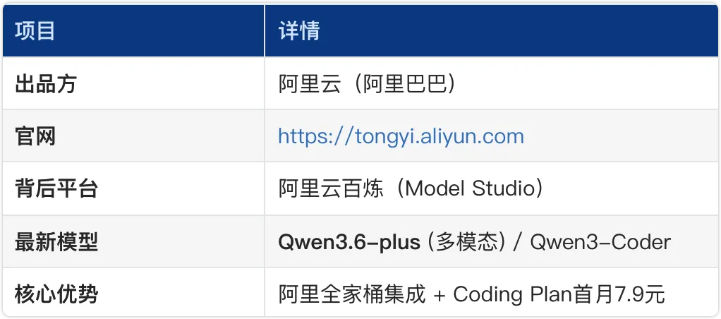 ⛳️ 一句话评价:背靠阿里云百炼平台的企业级AI助手,Coding Plan性价比天花板