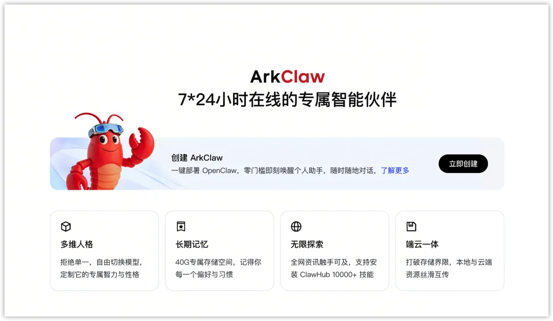 - 快速体验不折腾:ArkClaw(云养虾,零安装)