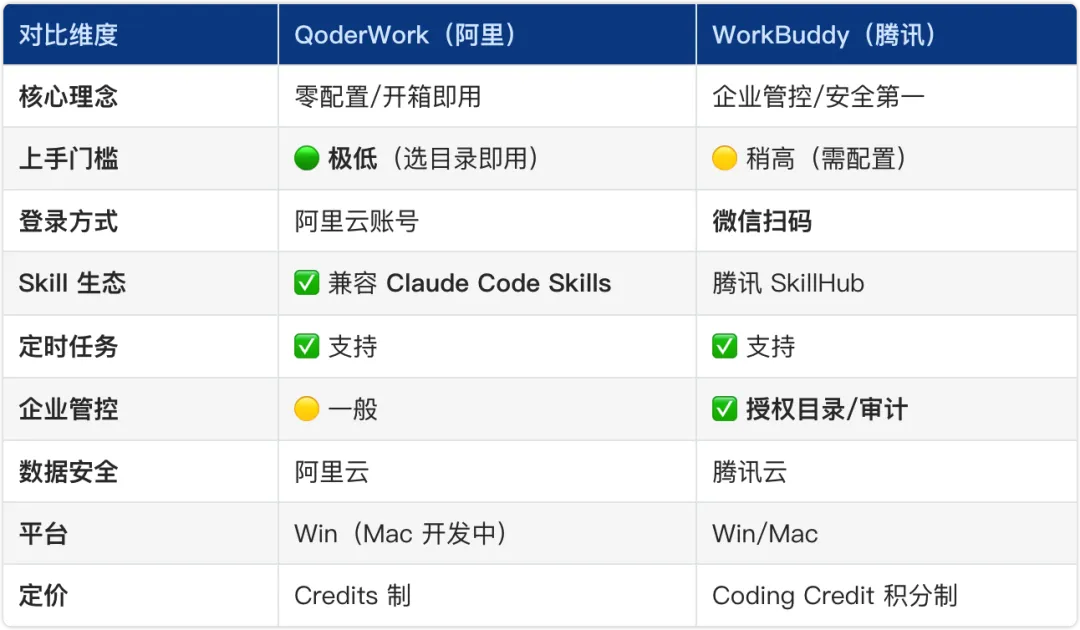 - 个人零配置:QoderWork(开箱即用+兼容Claude Skills生态)