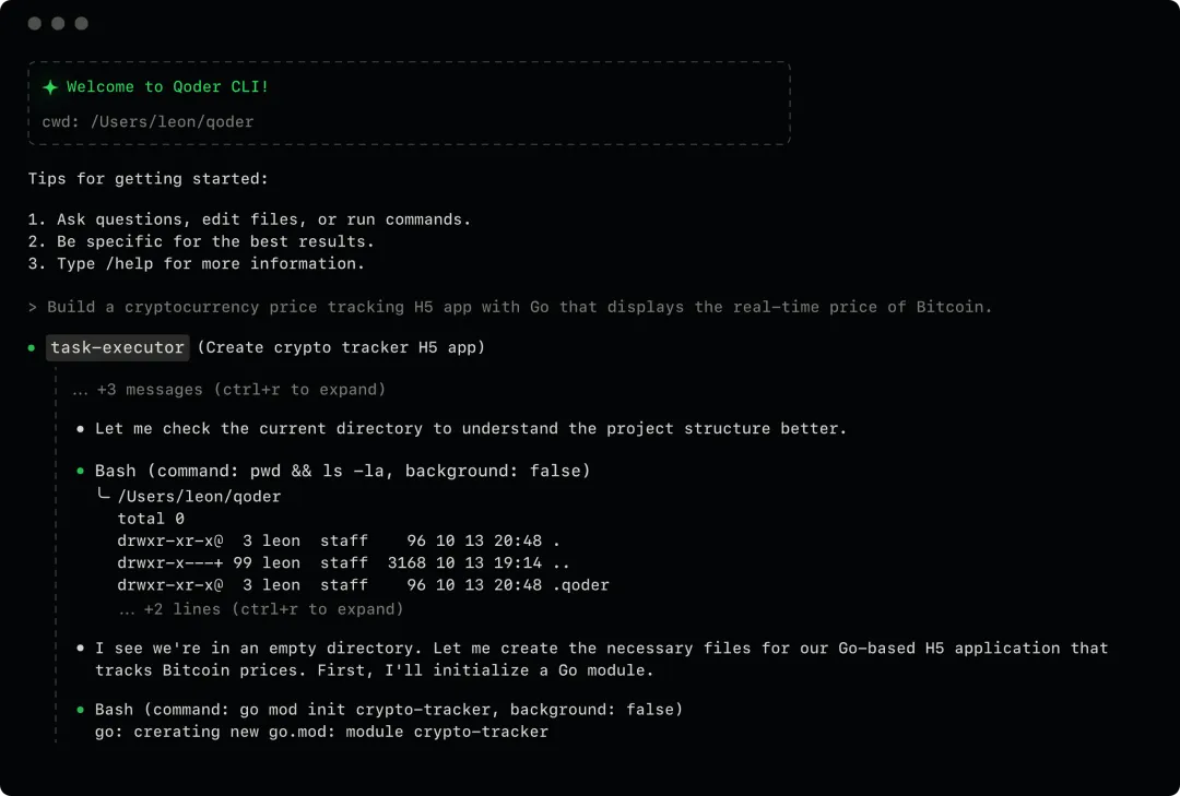 前面讲的每个 IDE、Claw 编程过程都类似,沟通方案,全自动执行,这里不一一演示,以下以 Qoder 为例演示,因为我想试试它在基于Repo Wiki 基础上进行 Coding 的效果如何
