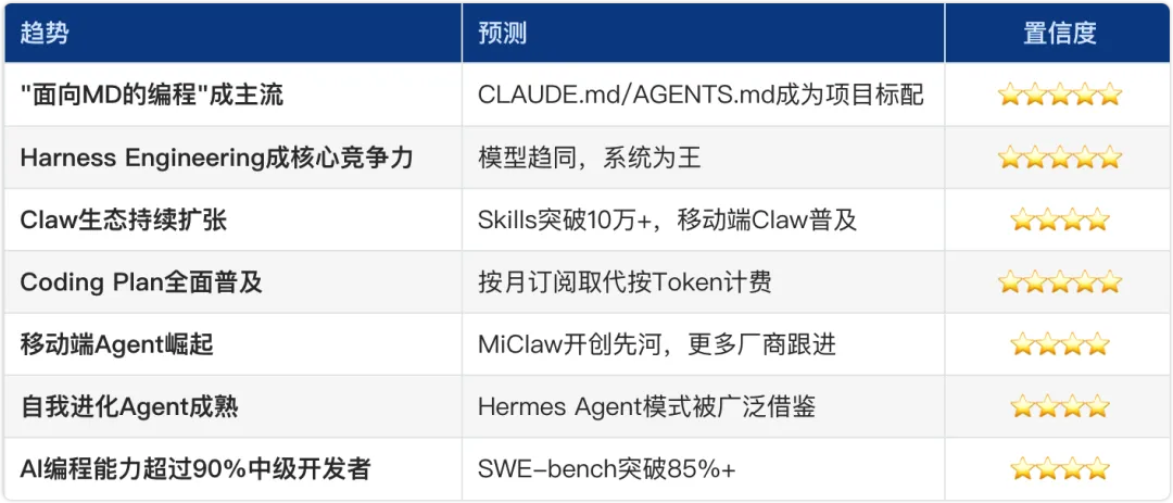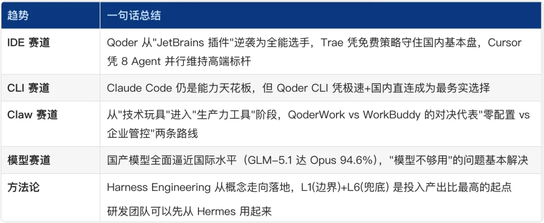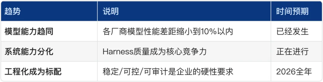 团队层面:📋 制定团队的AI编程规范和最佳实践🔨 统一选择IDE/CLI工具(降低协作成本)💰 采购企业级Coding Plan(智谱Max/MiniMax Ultra)🛡️ 建立安全审核机制(Skill扫描+权限管控)架构层面:🏗️ 评估Harness Engineering落地路径🔍 从L1(信息边界)和L6(兜底恢复)开始建设📊 建立Agent效能度量体系🧪 设立独立验证机制(避免"AI自查作业")预计投入:¥300-900/月/人 + 架构设计人力
