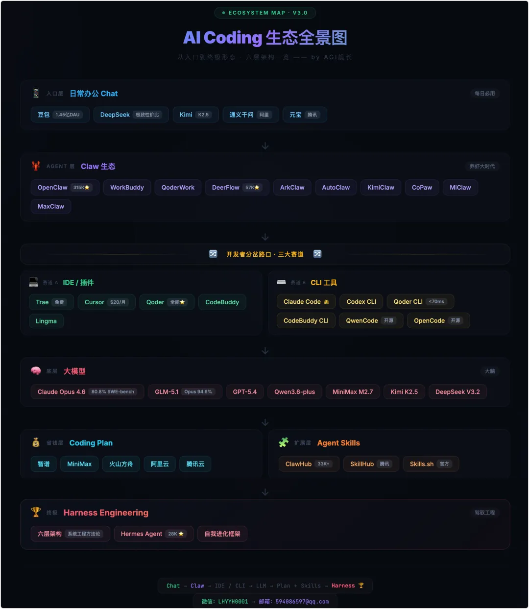 第一步(本周):📝 写好你的第一个 CLAUDE.md / AGENTS.md💻 安装 Claude Code 或 Codex CLI(二选一)🧩 装3个基础Skills:find-skills / skill-vetter / github第二步(本月):📊 对比2-3家Coding Plan,选一家主力使用🧠 深入了解Harness Engineering六层架构📖 阅读 JavaGuide 的Harness完整指南(必读!)第三步(持续):🔄 建立自己的Skill库和工作流📝 维护AGENTS.md作为动态防错日志🤖 尝试Hermes Agent的自我进化能力预计花费:¥49-149/月(Coding Plan)+ 学习时间投入
