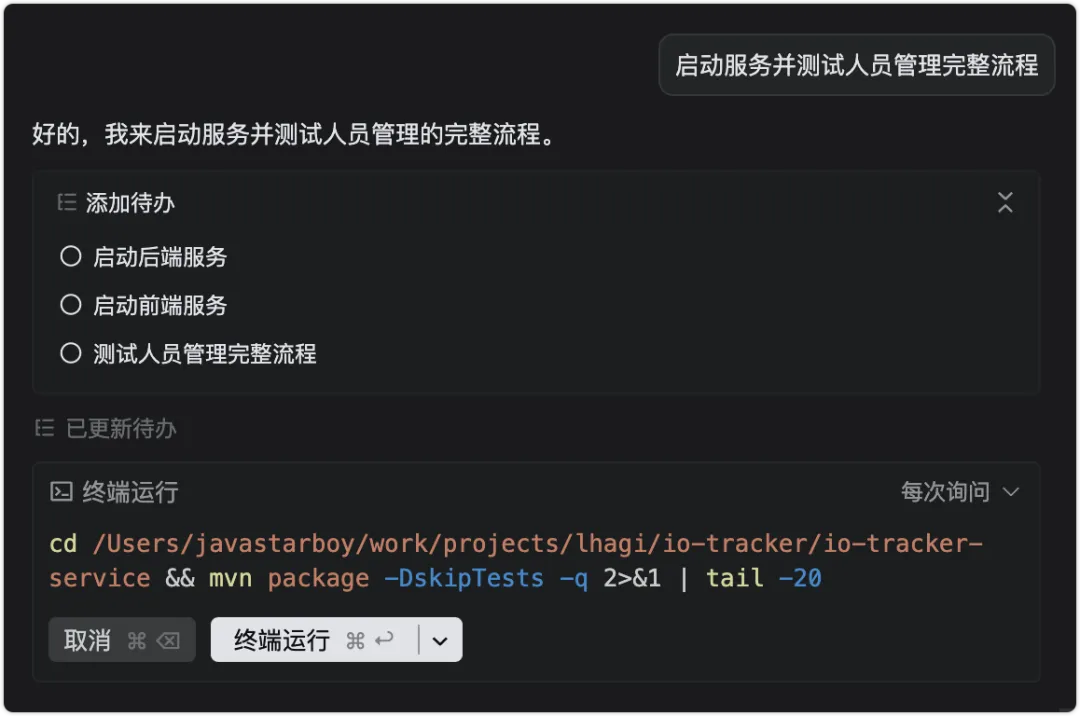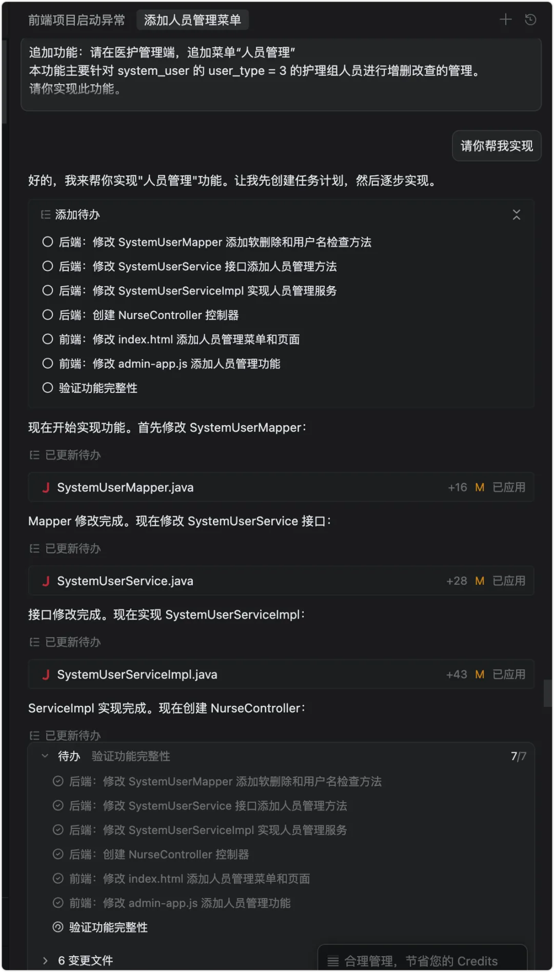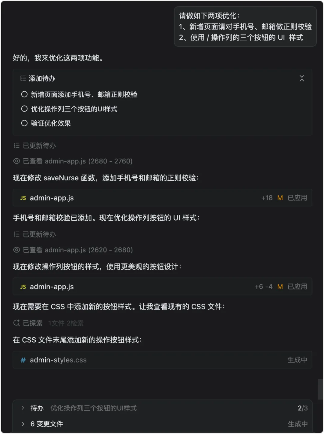 沟通无误后,让它开启编码工作,会自动生成待办任务