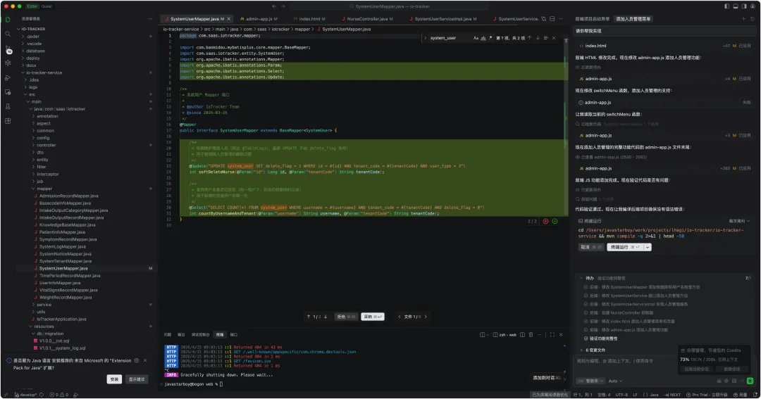 到了这里,我自己测试了一下,真的是没有一丁点 bug ,这个项目之前我是全流程使用 workbuddy 开发的,中间多少会出现一些 bug 得来回折腾,今天用 Qoder 尝试这个调整,真的是一次性 100% 通过率