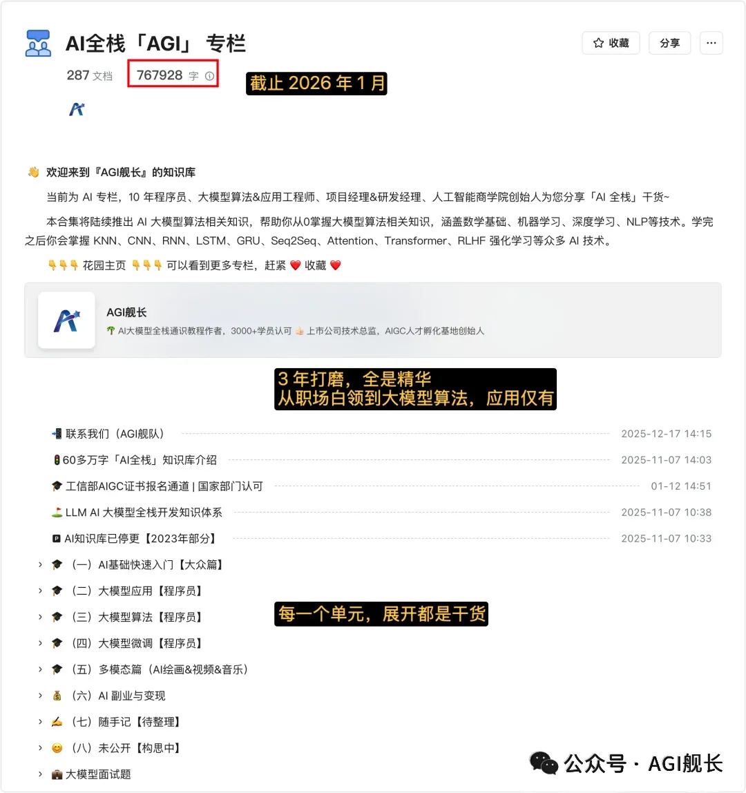 工信部 · AIGC证书 https://www.yuque.com/lhyyh/ai/ins6gx3o7hck7shb AI 工具集导航: https://tools.lhagi.com/ AI 大模型全栈 80 万字知识库: 本公众号对话框零门槛领取 3 年打磨,全是精华,从普通职场人士到大模型算法,应有尽有!