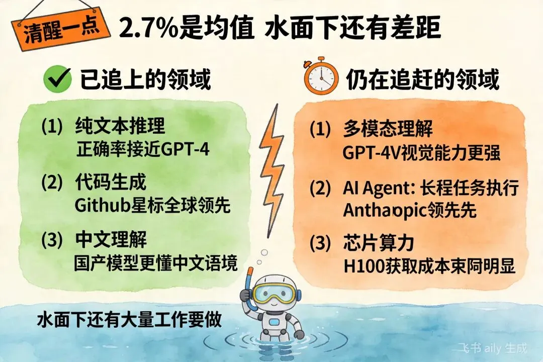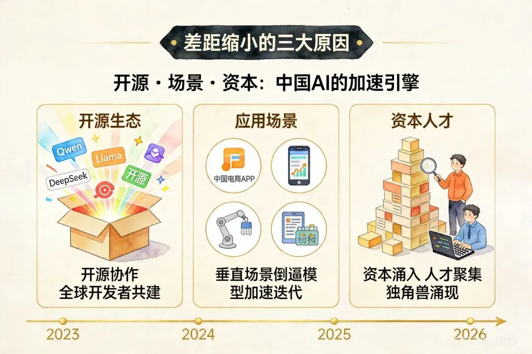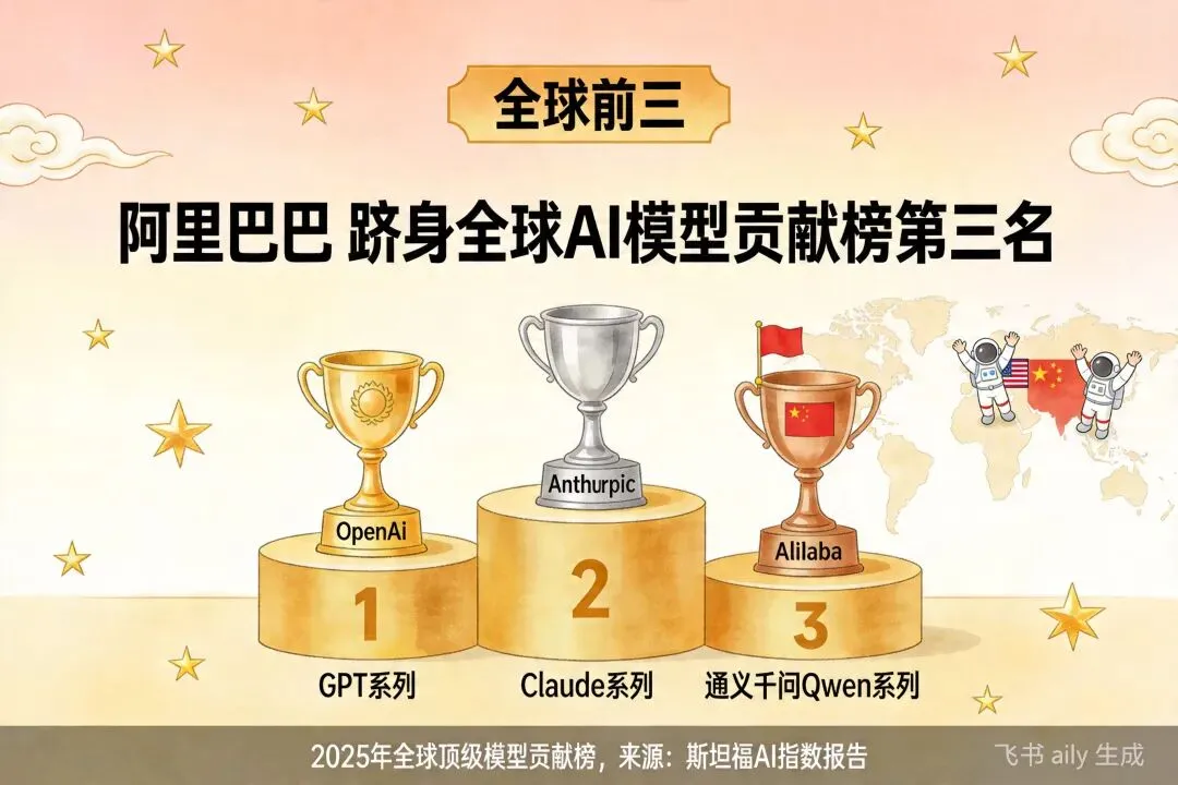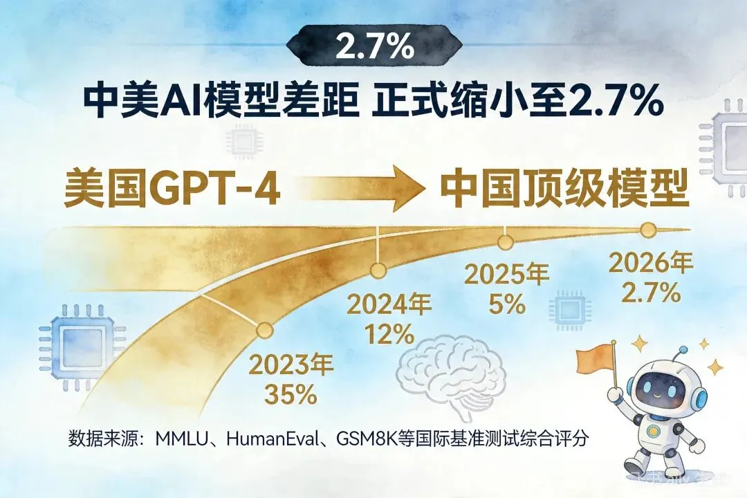 斯坦福2026 AI指数报告:中美学模型差距缩小至2.7%,阿里跻身全球前三这份报告,可能是中国AI最扬眉吐气的一份"成绩单"。4月18日,斯坦福大学正式发布《2026年人工智能指数报告》。这是一份年年发布、年年刷屏的行业"体检报告"。但今年,有两个数字格外刺眼:中美顶级AI模型综合性能差距:仅剩2.7%阿里巴巴:位列2025年全球顶级模型贡献榜第三名2.7%这个数字,放在一年前还是两位数,放在三年前是三四十个百分点。如今,它意味着:在最前沿的AI模型层面,中国和美国,已经基本站在同一条起跑线上了。2.7%,意味着什么?先搞清楚这个数字是怎么算出来的。斯坦福AI指数报告,采用的是MMLU、HumanEval、GSM8K等多项国际主流基准测试的综合评分,对全球主要大模型进行横向对比。2.7%的差距,指的是:在综合性能维度上,中国最顶尖模型的得分,与美国最顶尖模型的得分,相差不到3个百分点。这是什么概念?做个类比:高考总分750分,2.7%的差距相当于不到20分的分差。放到实际使用中,这个差距几乎感知不到——一个能做的任务,另一个也能做。更关键的是,这个差距还在继续收窄。阿里:全球第三,中国第一报告同步发布了"2025年全球顶级模型贡献榜"。阿里巴巴,凭借通义千问(Qwen)系列模型的持续迭代和国际影响力,位列全球第三,仅次于OpenAI和Anthropic。这是中国公司第一次,在全球模型贡献榜单上,杀入前三。阿里达摩院的Qwen系列,是近年来开源社区最活跃的大模型之一。从Qwen1.5到Qwen2.5,从百亿参数到千亿参数,每一代都引发全球开发者的关注和调用。斯坦福报告点名阿里,意味着:中国大模型,已经不是"追赶者",而是"贡献者"。差距缩小的背后,是什么在驱动?2.7%的数字,不是凭空出现的。它的背后,是三个结构性变化的叠加。第一,开源生态的爆发。Llama、Mistral、Qwen、DeepSeek……开源模型的质量在过去两年急剧提升。开源,意味着全球开发者共同参与迭代。中国公司的开源模型,在GitHub上的star数和fork数持续攀升,形成了真正的全球协作网络。第二,应用场景的倒逼。中国AI应用的广度和深度,在某些垂直领域已经超过美国。电商、短视频、智能制造、医疗影像——这些场景带来的真实数据反馈,让模型迭代有了"加速度"。第三,资本与人才的持续涌入。2025年,中国AI领域的融资规模和技术人才储备,依然保持着高增长。DeepSeek、智谱、MiniMax、月之暗面……一批批独角兽的涌现,形成了健康的竞争生态。2.7%,要不要太乐观?看到2.7%,有人兴奋,也有人提醒:别高兴太早。差距缩小的,是"综合性能"。但在具体维度上,情况并不均衡:纯文本推理、代码生成:国内模型已接近甚至局部超越GPT-4多模态理解、长上下文:与GPT-4V、Claude Opus相比,仍有追赶空间AI Agent、长程任务执行:Anthropic和OpenAI明显领先2.7%是综合均值,但均值之下,水面之下还有大量工作要做。此外,芯片算力的制约依然存在。H100/A100的获取成本,是悬在国内大模型公司头上的一把剑。对普通人的意义2.7%,不是一个学术数字,它的实际意义,体现在三个方面:第一,用AI工具的成本会越来越低。国内模型的竞争加剧,直接让API价格战打得越来越凶。Token价格一降再降,中小企业用AI的门槛越来越低。第二,国产替代的速度在加快。过去,很多企业用AI,第一反应是OpenAI、Anthropic。现在,越来越多的企业在评估:通义千问、DeepSeek、智谱——够不够用?答案是:越来越够用。第三,AI创业的土壤在变厚。模型差距缩小,意味着基于国产模型做应用开发的可行性提高了。不再需要担心"底座"不够强,应用的想象空间才能真正打开。写在最后斯坦福的这份报告,给了一个值得记住的数字:2.7%。但数字只是结果。真正值得关注的,是产生这个结果的机制——开源协作、应用倒逼、资本涌入、人才积累——这些加在一起,才是中国AI真正的底气。2.7%不是终点,它只是一个新起点。想要了解更多OPC创业玩法及第一时间获取AI Agent赛道一手动态,欢迎持续关注我们~ 👉 后台回复「入驻」"获取完整政策包,添加企业微信获取一对一创业咨询。让AI成为你的创业合伙人,一个人就是一支队伍。