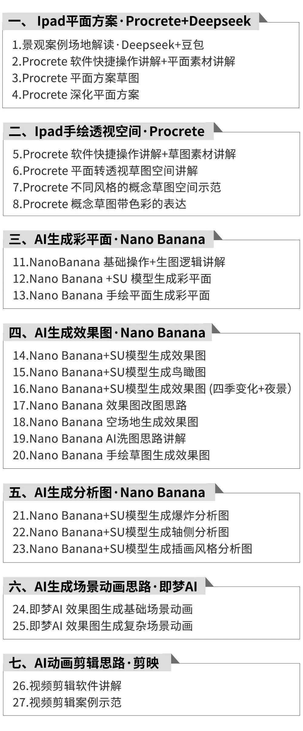 重点训练“手绘快速构思+AI高效落地”,解决场地限制、功能需求等实际问题,掌握项目的设计逻辑。