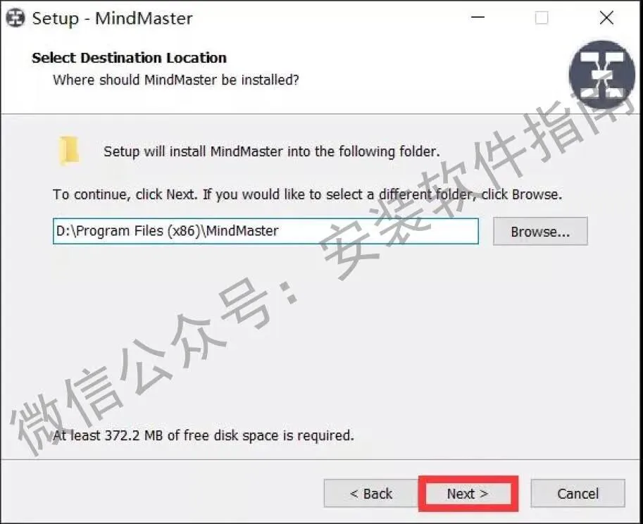 4.安装路径可以选择D:\Program Files (x86)\MindMaster,然后点Next