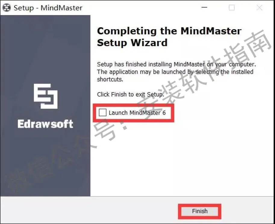 9.安装成功,取消勾选Launch MindMaster 6,点Finish