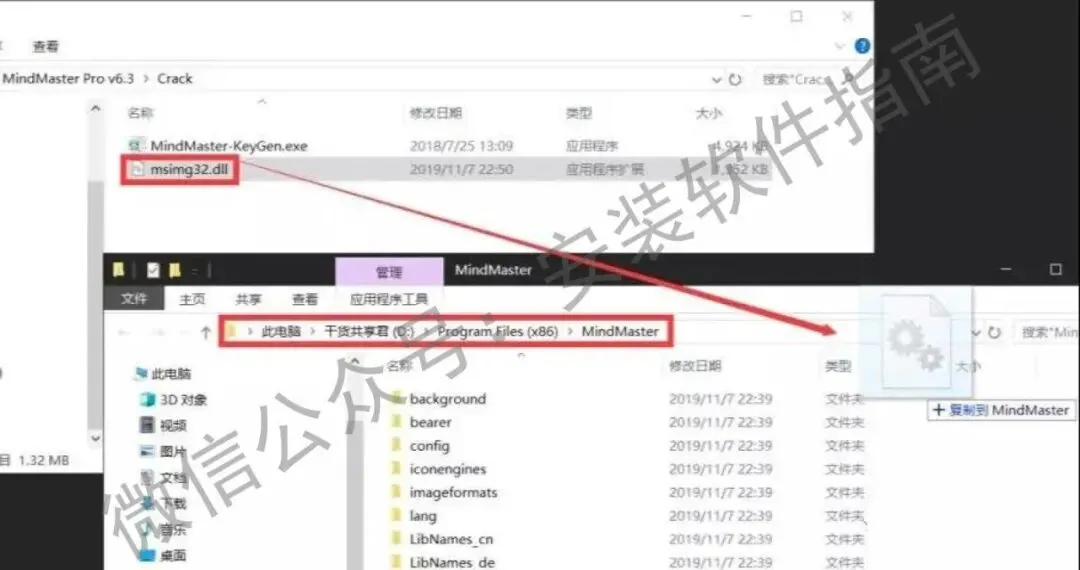 10.把Crack文件夹里面的msimg32.dll文件复制到安装路径D:\Program Files (x86)\MindMaster