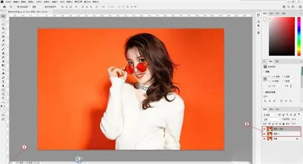 5、我们将图片的显示调整为100%的显示比例,然后在图层中复制两层出来,然后我们将图层修改名称以便待会查看对比效果,我们将上面的图层命名为超级缩放,待会我就在这个图层上进行超级缩放,现在将它前面的眼睛关掉隐藏图层,下面的图层命名为直接放大,待会我们直接快捷键【Ctrl+T】来进行放大