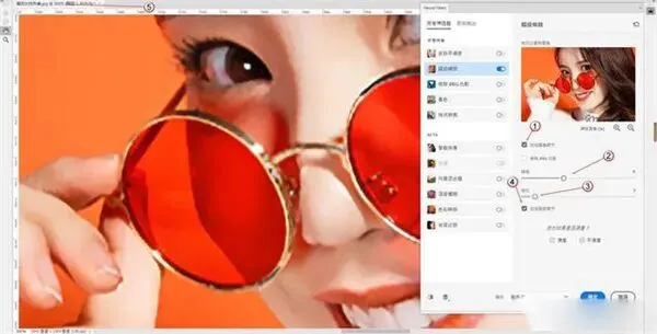8、打开Neural Filters滤镜后打开超级缩放功能,然后点击缩放图形后面的加号放大镜