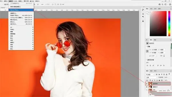 7、我们现在选中超级缩放图层,然后执行【滤镜】>【Neural Filters】