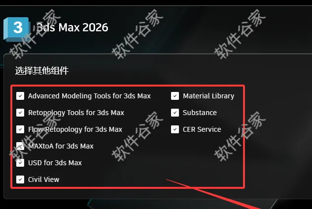 接受许可协议,将安装路径修改为非系统盘(如 D:\3dsMax2026),确保路径不含中文和特殊字符,点击安装。