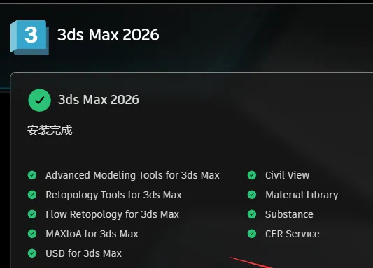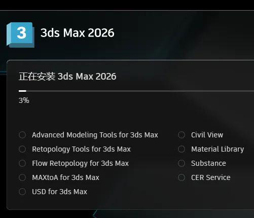 等待安装完成后,从开始菜单找到"3ds Max 2026 - Simplified Chinese"拖拽到桌面创建中文版快捷方式。