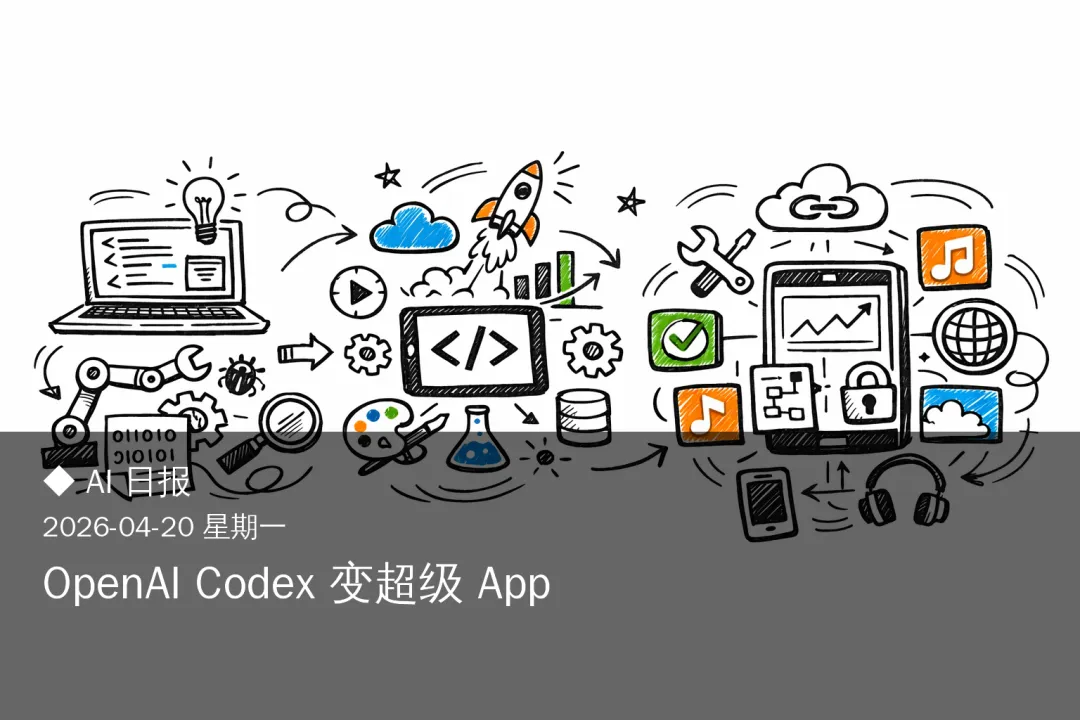 4 月 16 日 Altman 在 X 和 OpenAI 官博同步官宣 Codex Desktop 大更新,定位从"编码助手"升级为"桌面超级 App"。官方博文重点点名 Atlassian Rovo、Microsoft Suite、Superpowers 等第三方插件——上次 OpenAI 主动给第三方品牌做推荐还是 GPTs 刚发布时。这是 OpenAI 从「一家做模型的公司」过渡到「一家做跨应用 Agent 平台的公司」的标志性节点。🔗 OpenAI 官博原文 | VentureBeat 解读