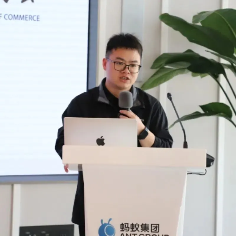 参观结束后,活动正式进入分享交流环节。蚂蚁集团解决方案专家霍君礼致开场辞,对各位嘉宾的到来表示热烈欢迎,同时简要介绍了蚂蚁集团在数智化领域的布局与实践,以及本次活动的交流初衷与核心方向,期待以此次活动为纽带,搭建行业交流互鉴的桥梁,与各界伙伴共同探索数智技术在客服领域的创新应用与发展路径。