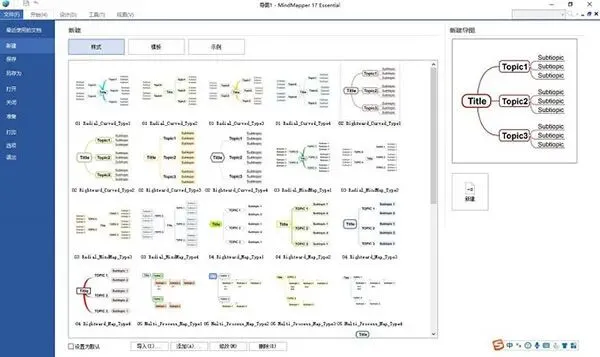 打开MindMapper后点击左侧“新建”,挑选对应样式模板或导入已有文件,一键即可生成空白导图,点击中心主题就能录入文字,还能一键批量新增多个主题、子主题与浮动主题,同时自由修改导图线条、外形、配色样式。