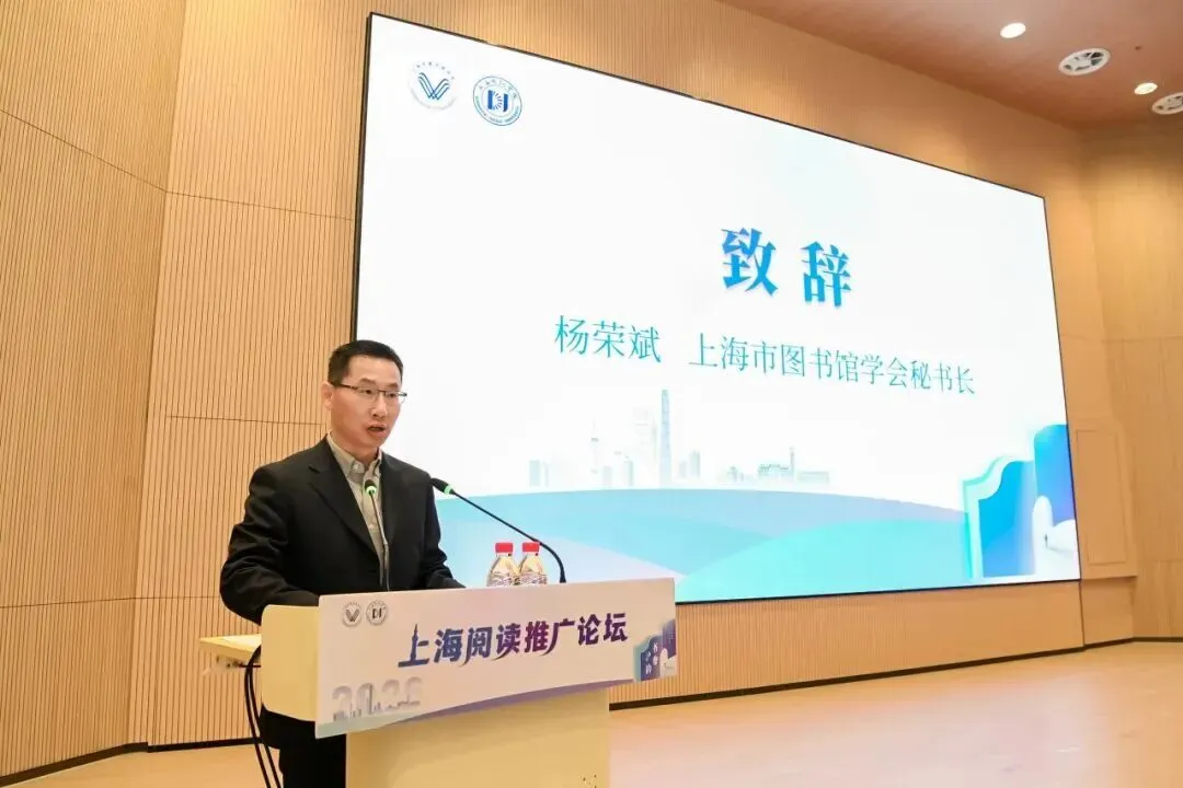 上海市图书馆学会秘书长杨荣斌在致辞中强调,《全民阅读促进条例》正式施行,标志着全民阅读从政策引导全面迈入法治护航、规范推进、体系完善的新阶段。他回顾了学会近年来在未成年人阅读、大学生阅读、数字阅读等领域的扎实成效,强调站在新的起点,学会将以法治为纲,筑牢阅读推广制度根基;以品牌为翼,擦亮书香上海城市名片;以融合为径,激活阅读生态创新动能。希望全市图书馆人携手同行,推动上海阅读推广事业再上新台阶。