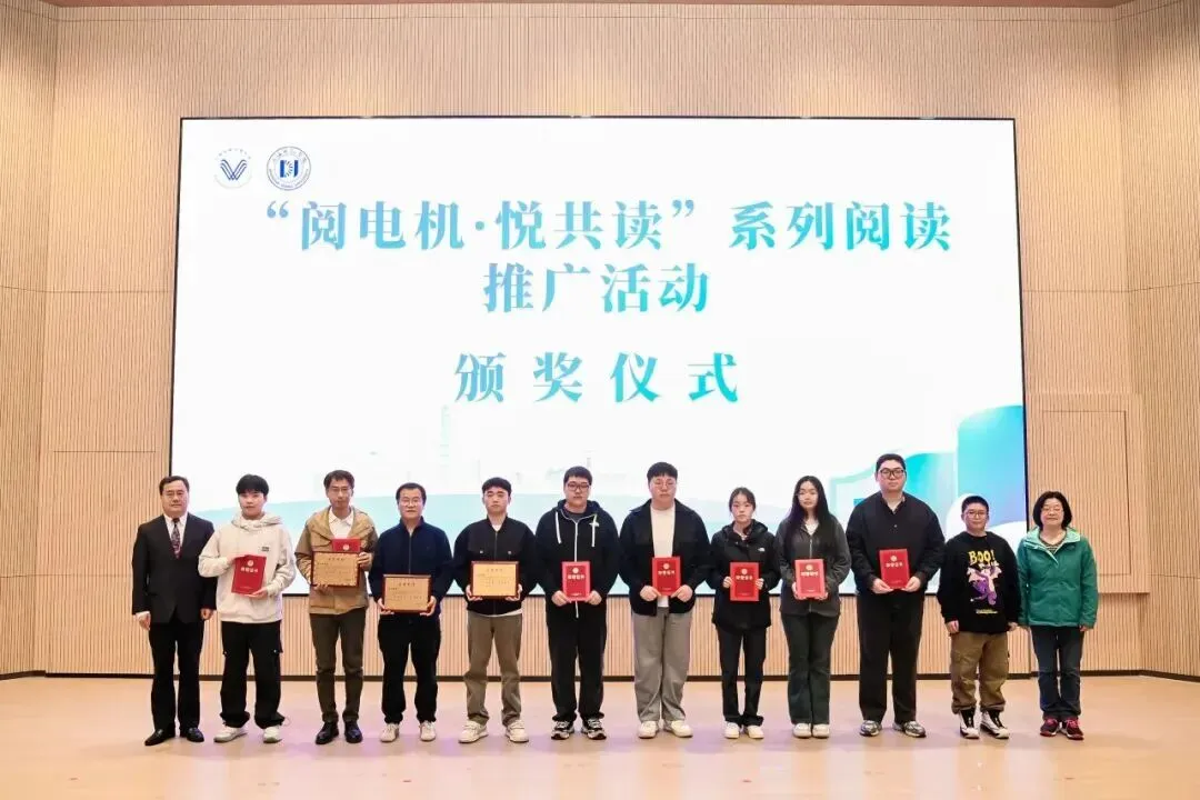 此外,还对2025“阅电机·悦共读”系列阅读推广活动进行颁奖,展示了学校阅读文化建设成果。