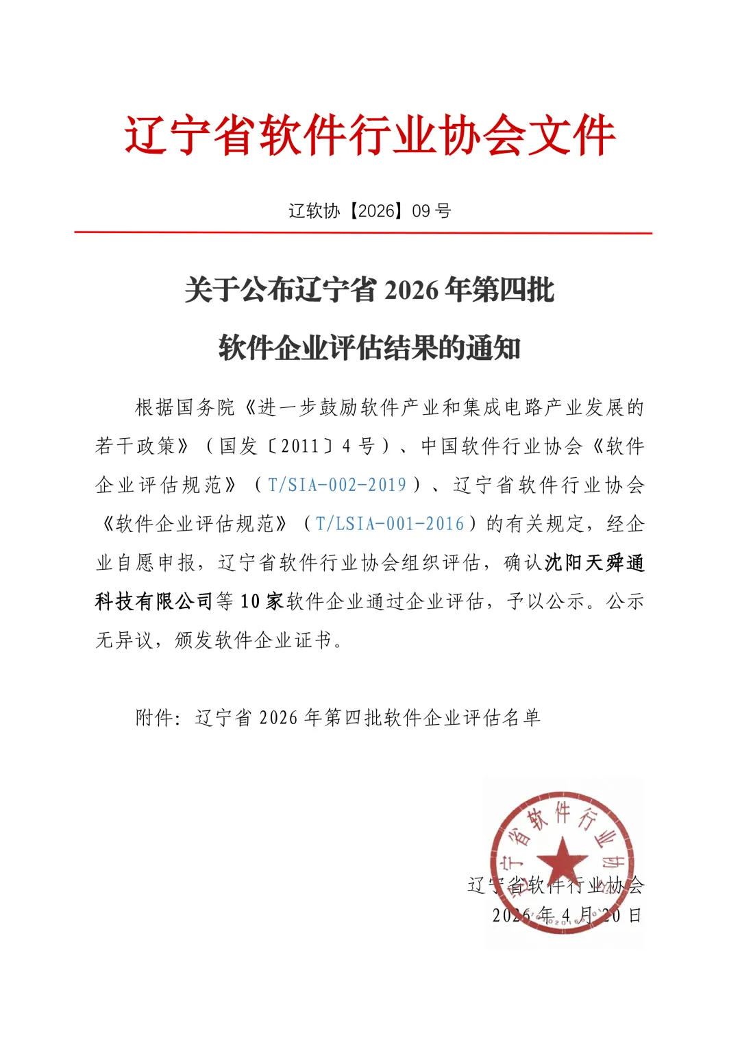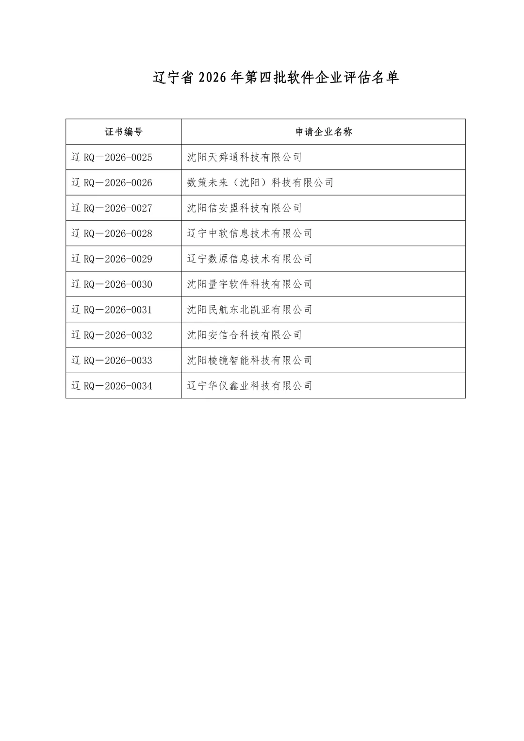 关于公布辽宁省2026年第四批软件企业评估结果的通知
