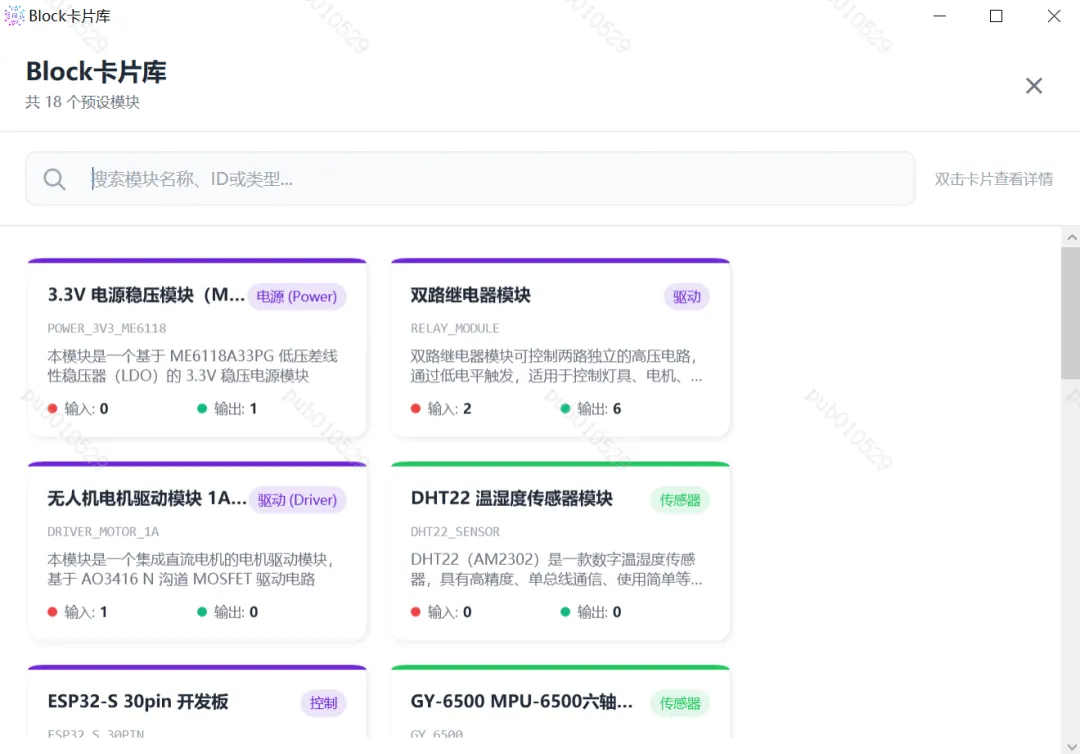 这种设计让模块库可以无限扩展,无论是常见的传感器,还是冷门的工业级芯片,都能快速加入到系统中使用。