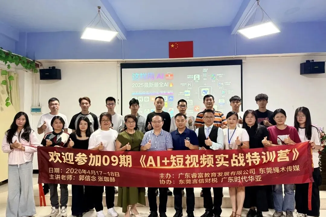 课程圆满落幕,全体师生合影留念,定格学习收获与同窗情谊。大家满载干货知识、原创作品与行业人脉,正式开启 AI 短视频创作新征程。