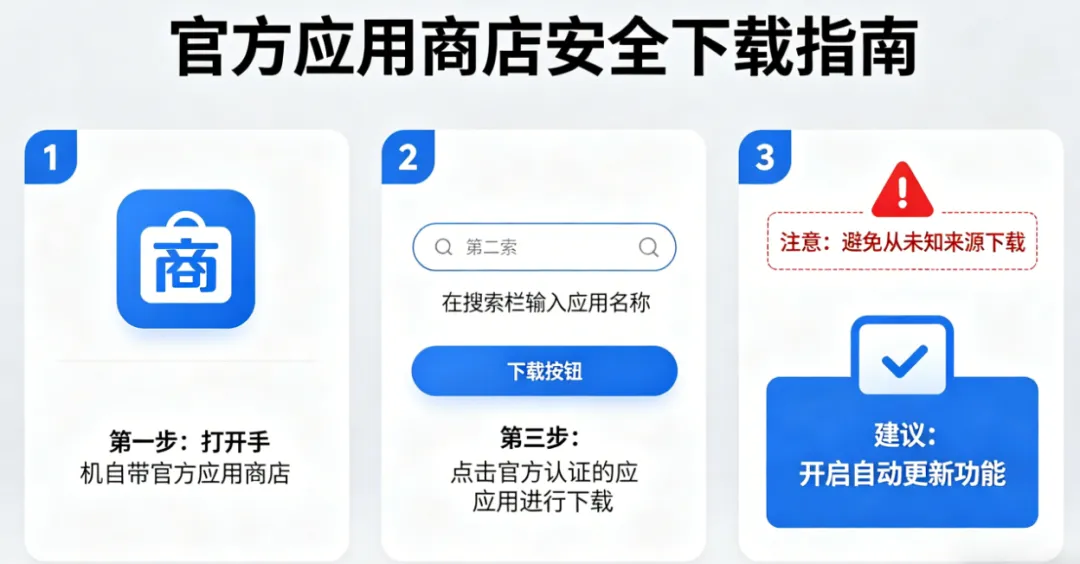 平时下载 APP 的时候,不要去其他非正规渠道下载,全部在手机官方应用商店下载!每个手机都有自己的官方应用商店,里面的 APP 都经过严格审核,能有效避免上述安全事故。