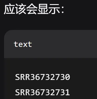 #打开终端,用 echo 命令创建一个 SRR_Acc_List.txt 文件