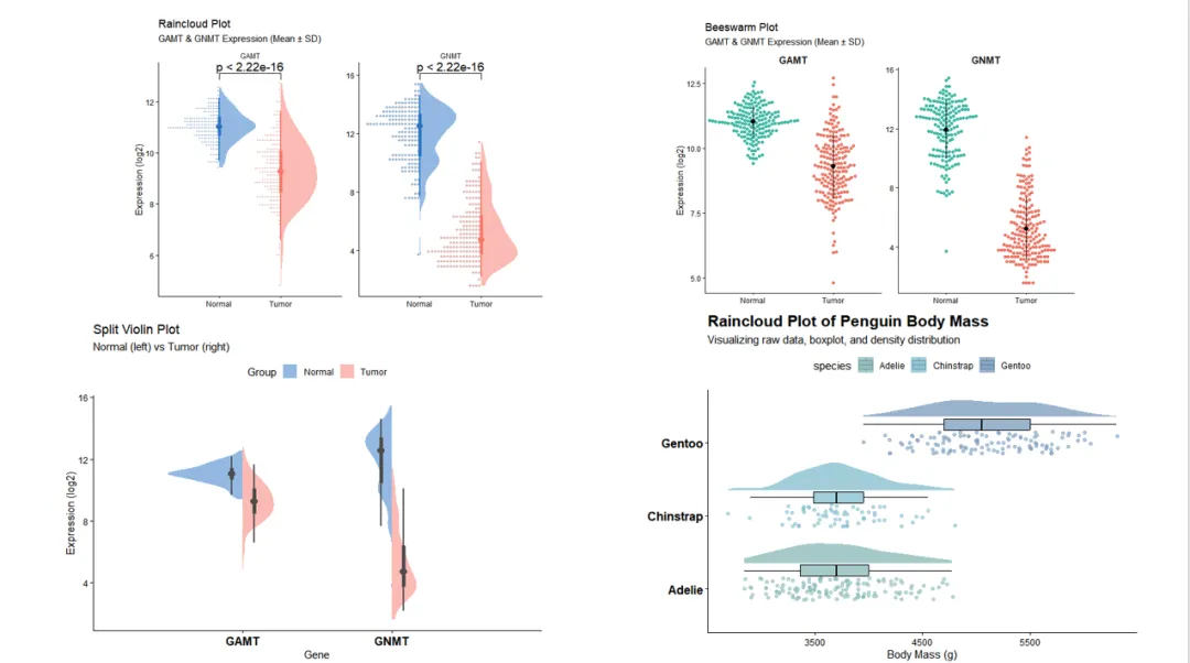 Day10 组间比较主题:箱线图、蜜蜂图、小提琴图、分裂小提琴图、云雨图