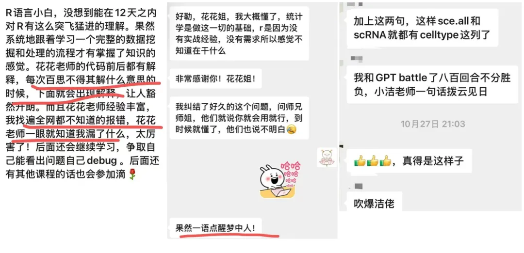 其实最重要的是课程研发的边际成本更低,不用我投入时间去讲课,也就换来了超高的性价比!让没有老师给报销的学生们也可以实现学习自由。根据我们前面开办新手学习小组和单细胞学习小组的经验,图文的形式完全可以把大家教会,我们从小学的东西不都是从书本上面学的么。比书本更好的是,我可以空闲时间对资料进行实时更新,根据大家遇到的问题不断完善资料,我的时间成本降低了,你们也可以花小钱学大招,双赢嘛。有不少学员表示我是在做慈善,真的入股不亏!