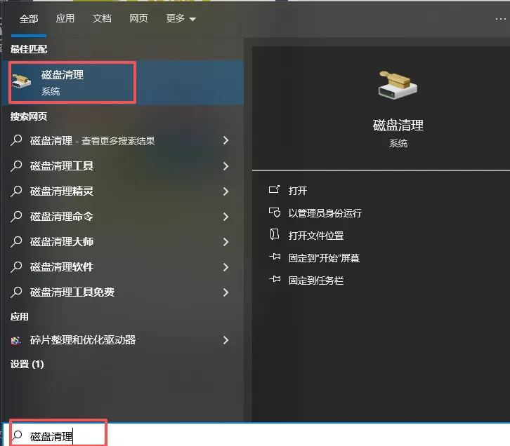 方法二:使用系统搜索“磁盘清理”,并选择清理C盘。