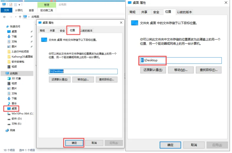 打开“此电脑”,在左侧找到“桌面”并右击选择“属性”→“位置”,把C改为D(或其它盘),确定后等待数据迁移后结束。其它的“下载”、“文档”、“图片”、“视频”文件夹按同上操作,移到 D 盘(或其它盘符)。