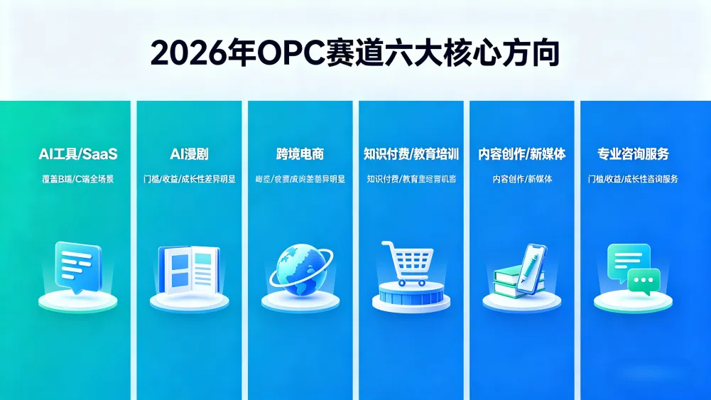 OPC 赛道覆盖 B 端、C 端全场景,不同赛道门槛、收益、成长性差异明显,2026 年最具潜力的有六大核心方向: