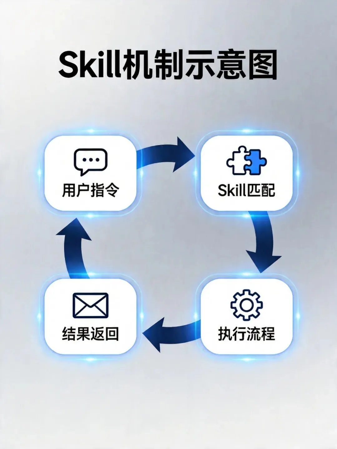 Skill机制的精妙之处在于:它把复杂的多步骤任务封装成一个可复用的流程,让AI不需要每次都从零开始"想"怎么做,而是直接走预定义的可靠路径。