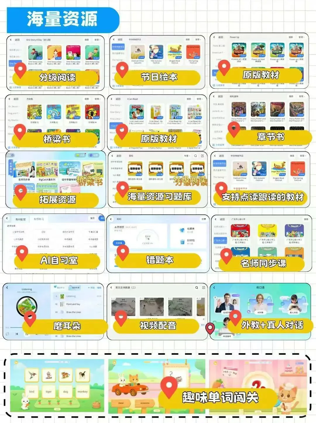 ✅海量英语原版教材绘本资源,同步学内容