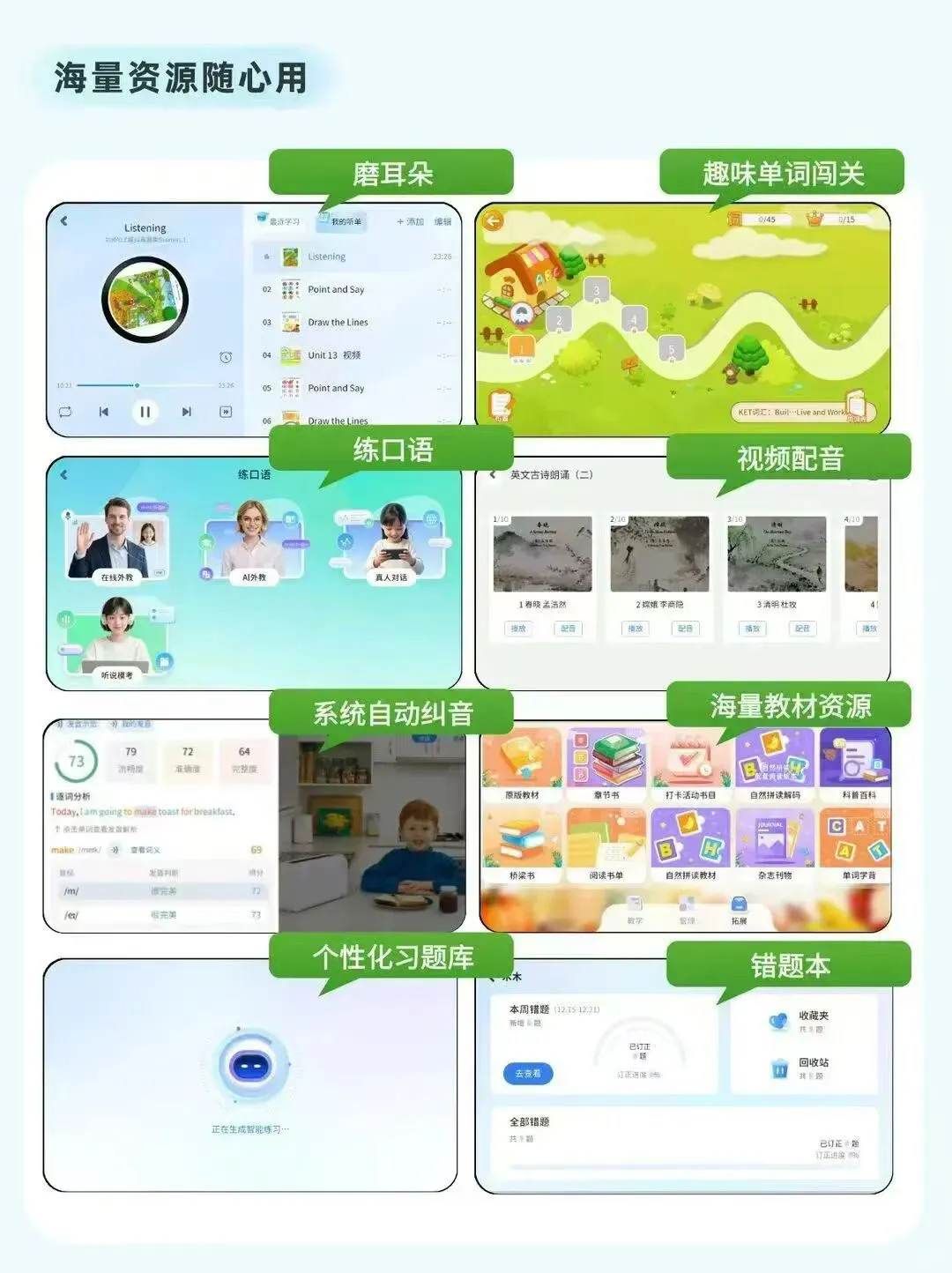 ✅背单词、点读、纠音、视频配音、真人对话、