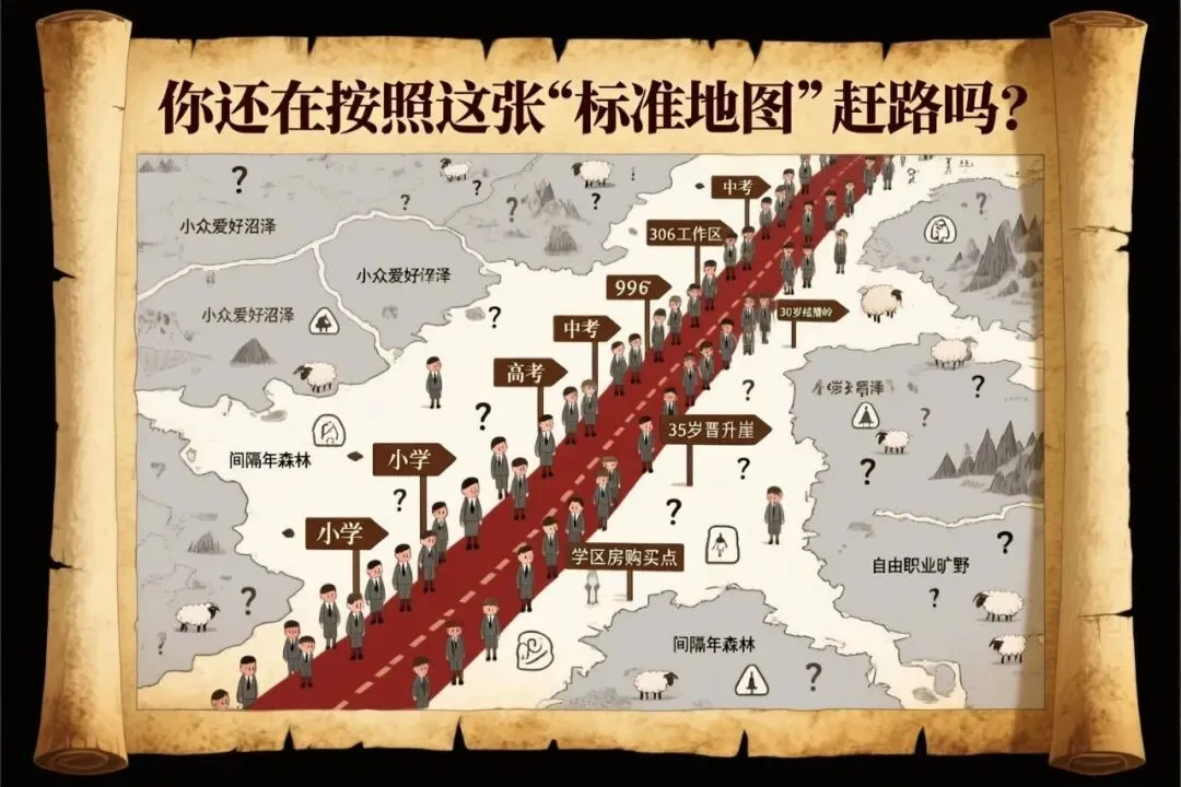 打开社交媒体,一张无形的、标准的“人生徒步地图”仿佛在每个人出生时就发到了手中。