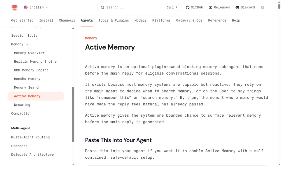 在聊做梦之前,先说一个更基础但同样重要的更新:Active Memory(主动记忆)。