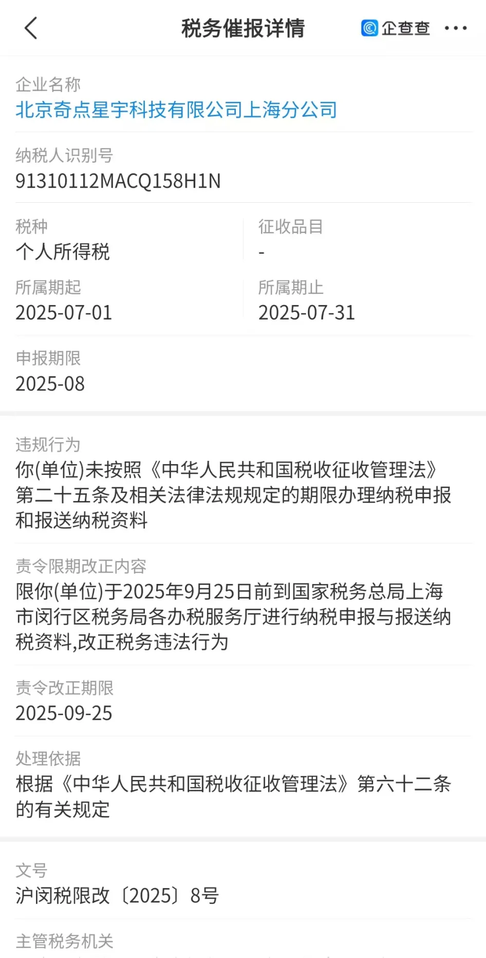 值得注意的是,2025年,这家上海分支机构曾两次收到税务机关通知,被要求及时办理纳税申报、报送纳税资料,并整改相关税务违法行为,可见该公司在税务合规方面存在明显问题。