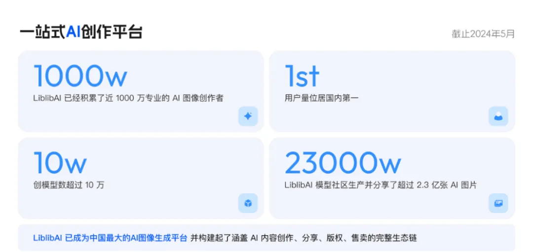 与税务瑕疵形成鲜明对比的是,“哩布哩布AI”官网大肆宣传自身“实力”:截至2024年5月,平台累计拥有近1000万专业创作者用户,号称“国内用户量第一”。