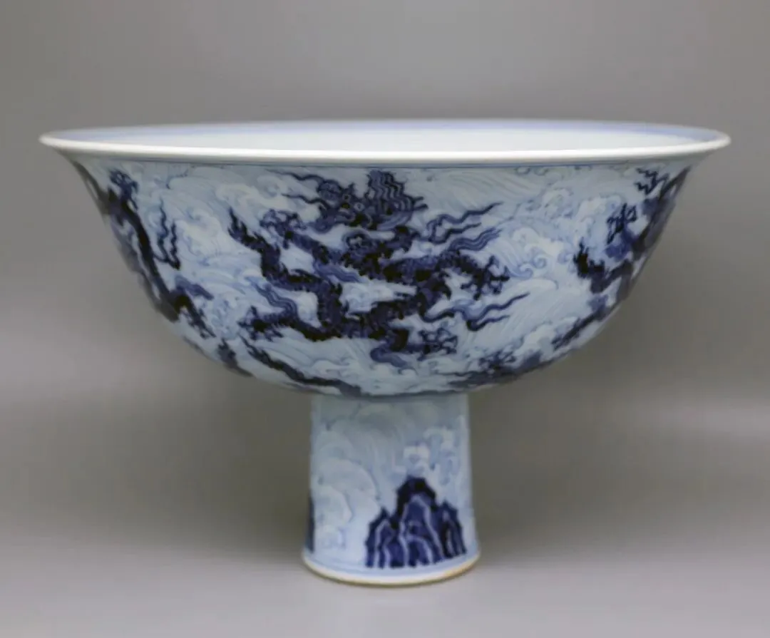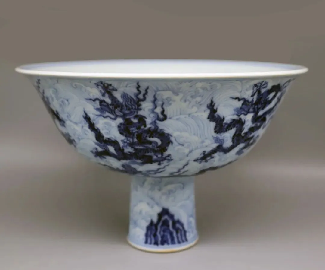 工艺价值:集青花分水、精湛制胎、高足器型三大明代早期官窑顶尖工艺于一体,是明代青花瓷 “形、神、色、工” 完美统一的典范,研究价值极高,为宣德青花的核心代表器物。