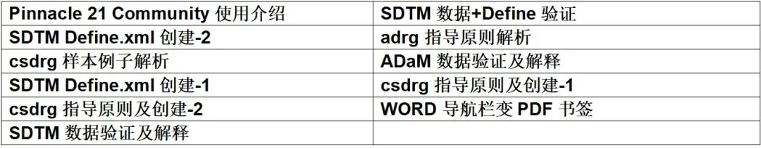 Define-XML制作视频,利用Pinnacle 21 Community软件创建SDTM/ADaM Define.xml的全面详细地指导过程,包括数据验证及解释,Review Guide撰写,一般考虑和实际操作方法等。模块三视频总时长:8小时7分15秒