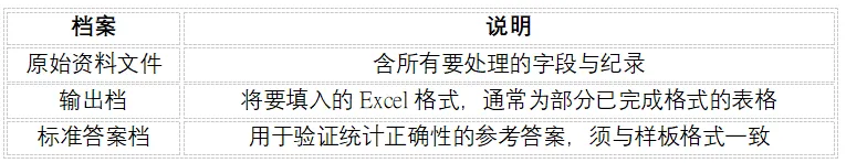 以一句话说明:「我们要根据某份原始资料,统计 X 指针,依据 Y 条件,并输出至 Excel 中的 Z 区块。」