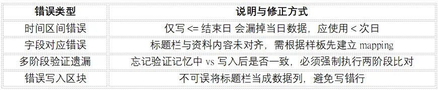 若不一致,AI 须进行推理分析并修正(例如时间范围边界、空白值、隐藏域错误)