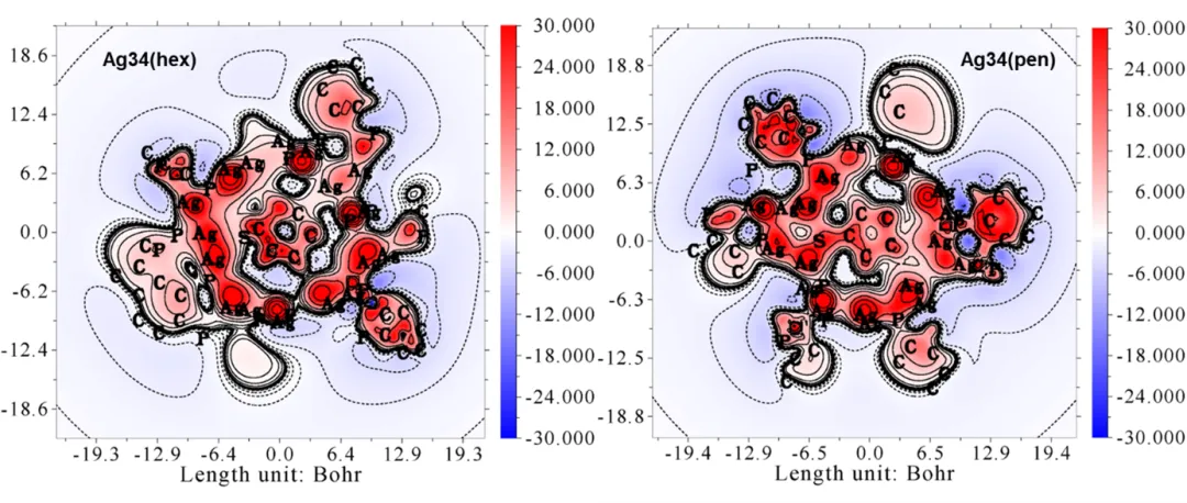 图2.Ag34纳米团簇的等化学屏蔽表面(ICSS)计算